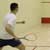 Let's begin with the drop: you want to aim for a short, controlled swing on the racket, the face open so that it "cuts down" through the ball, thus creating the backspin that will allow it to impact high on the front wall and hug the wall as it descends. The follow-through should also be short in order to aid the soft caress of the ball against the strings.